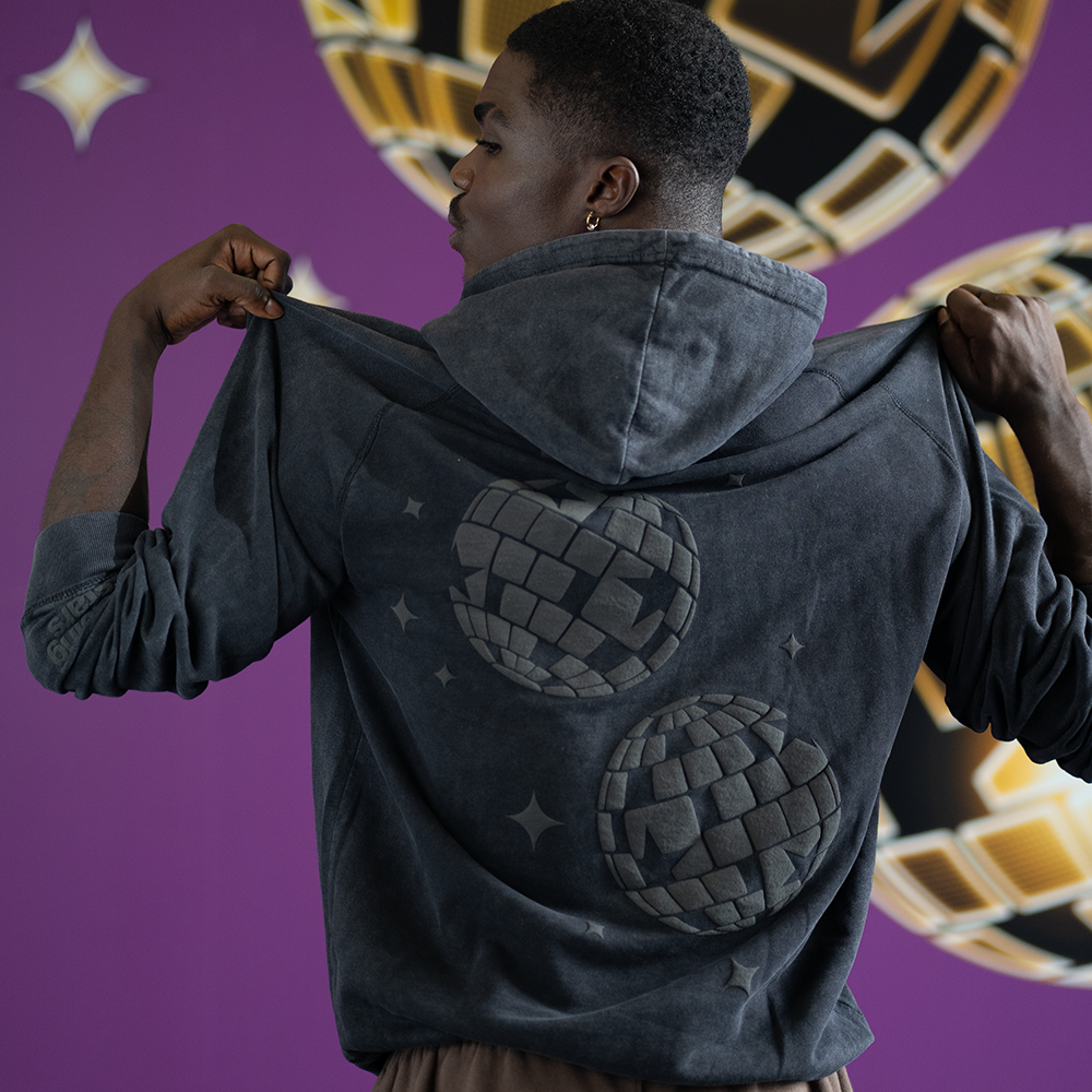 Vintage Black pullover hoodie with Live From Hollywood on the front and Dancing With The Stars logo on the left sleeve with Mirrorball logo on the back